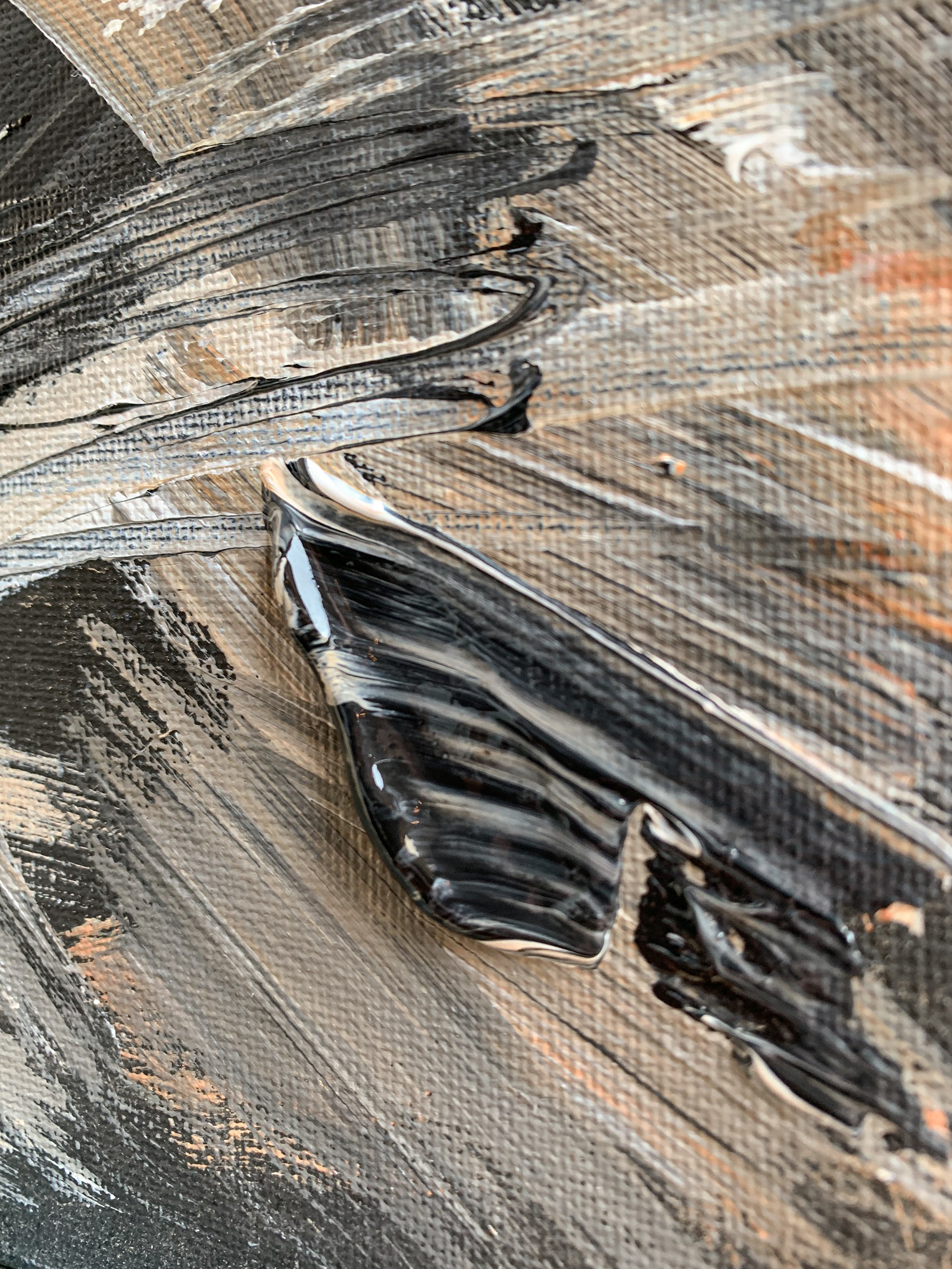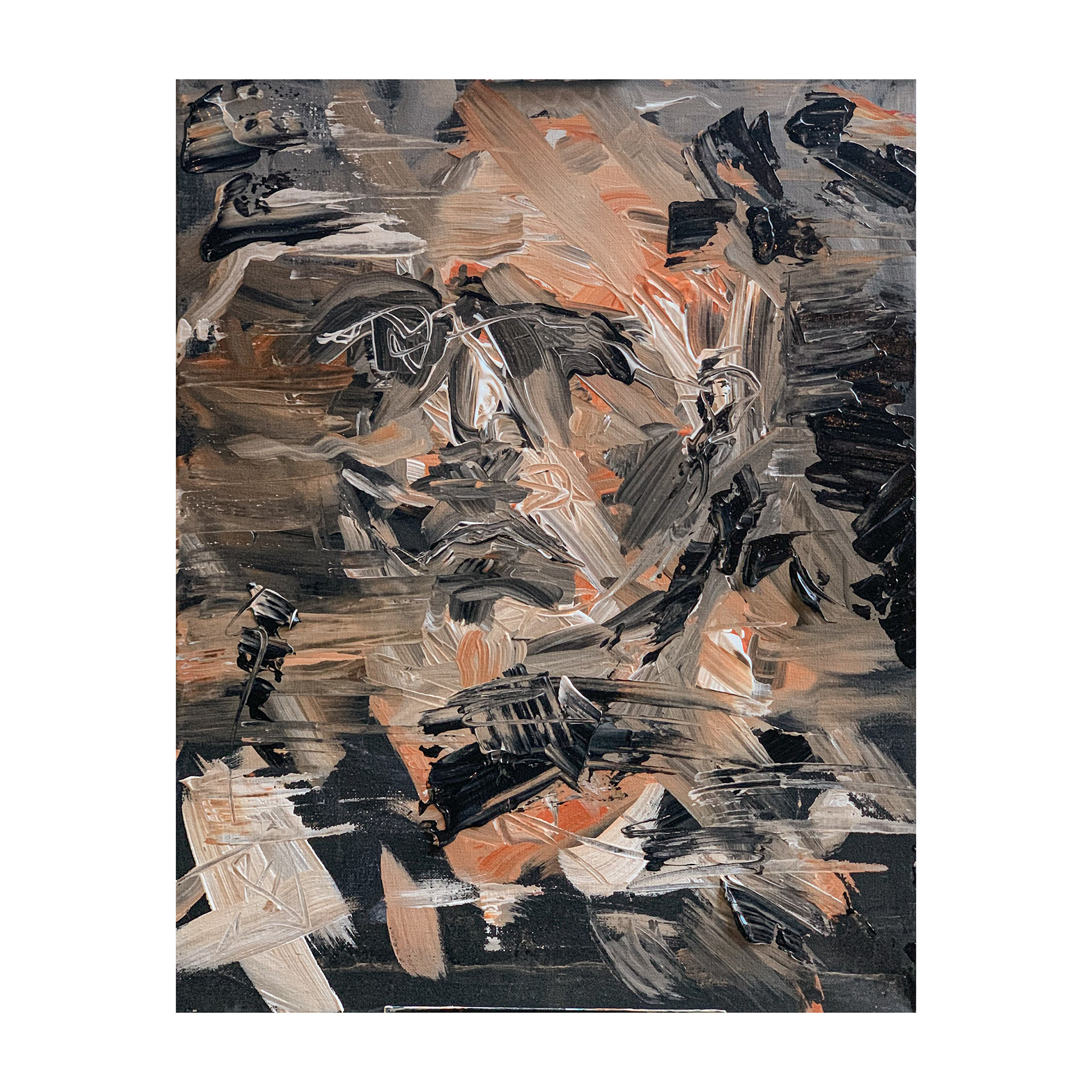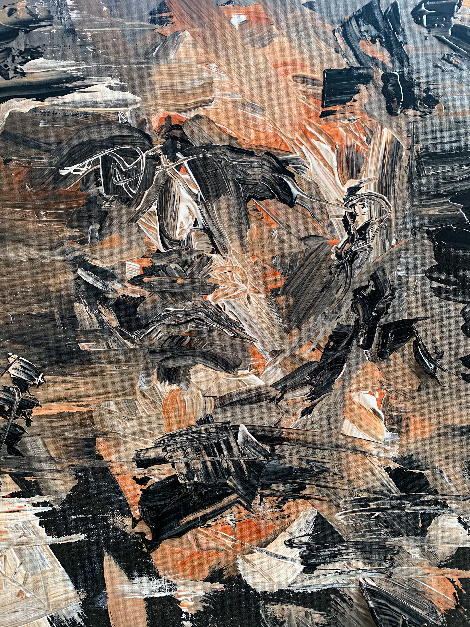 The black and white check is a method for me to check my contrast and form. Contrast is what makes it easy for the eye to pick out a subject from the background. Distinguishing a good foreground, mid-ground, and background brings depth to a painting. But sometimes you don't want that. This this painting I wanted it to look like there was a face hidden in the secrets of the abstract piece.